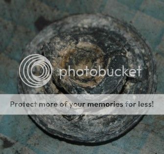 Now to tackle the tap proper. It is held together with four set screws with nuts, and after undoing those, I was able to prise the two halves apart. Apart from all of the gunge, there was a strangely distorted piece of rubber inside.