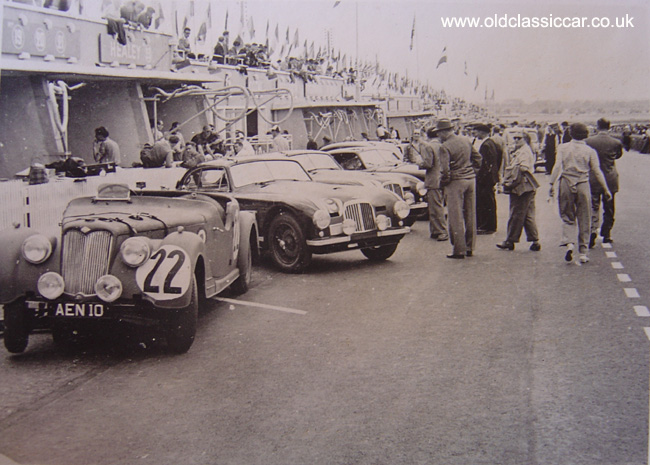 Riley RM. Car 22 is the Riley RM reg. AEN 10 (RMB or RMC?) of Robert Lawrie and Geoffrey Beetson. Behind are Aston Martin DB2s.