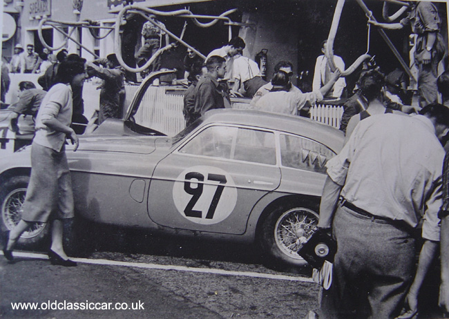 Bentley Corniche TT. Pitside now, showing the streamlined Bentley TT of Eddie Hall and Tom Clarke pulling in. Mind the cyclists!