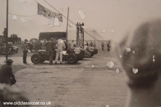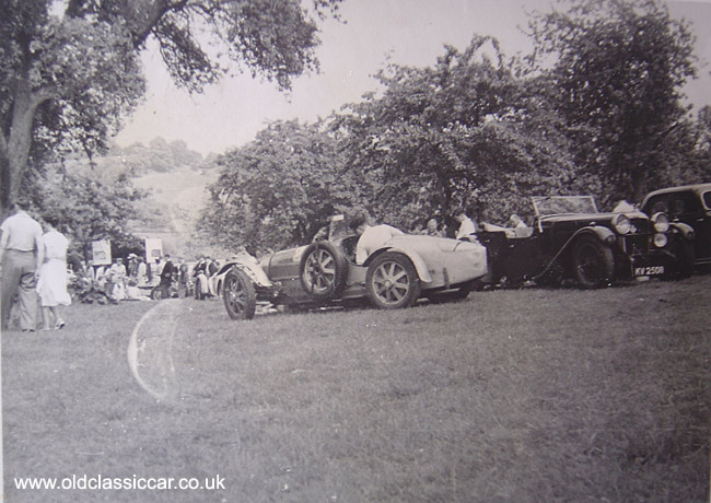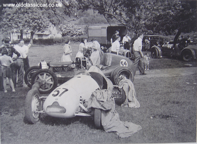 Paddock. This photo contains a choice of hillclimb cars at Shelsley Walsh - note the straight 8 Bugatti (?).
