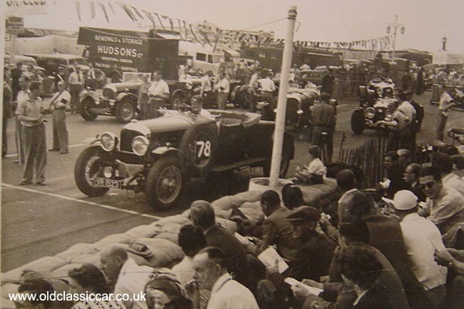 Bentley on the line. VR 1523 prepares to do a timed run, with several other Bentleys watching on.