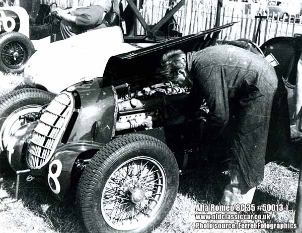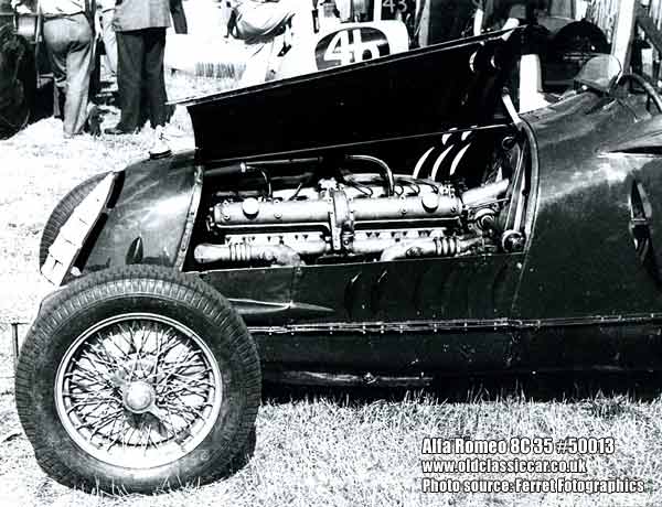 The only time I've seen 50013 was at the Goodwood Festival of Speed, back in 1997 or 1998. We stayed at Sten (Tammy) Aberg's home, as he lived not far from Goodwood, and in return we paid for his tickets to attend the 3 days at the FOS. Tammy was one of Poore's mechanics, in the 1940s and early 1950s. We didn't know that the Alfa was taking part in the event, so it came as a great surprise to stumble across it, and its then-owner, in the paddock. Tammy hadn't seen the car since 1974, and was delighted to see the old stager once more. This was a great opportunity to see the car close-up for the first time, chat with the owner about both the car and the Dodge, and sit behind the wheel of this mighty machine. The slightly incongruous box attached to the side of the car, holds a battery for the new electric starter. The car changed ownership during 2006, and again in 2013, and still resides in the USA as far as a I know.
