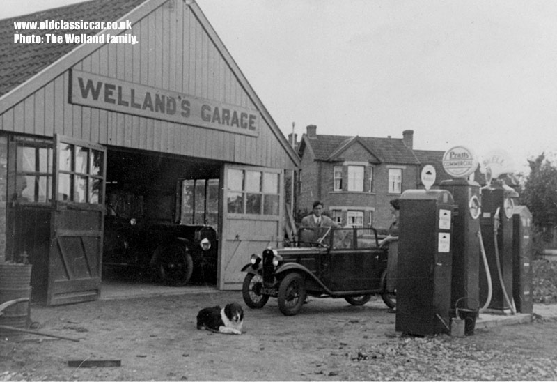This fantastic old photograph captures the moment that an Austin 7 two-seater pulls up at Welland's Garage for a spot of fuel. There are two petrol pumps - one for Shell Spirit, the other for Pratts Commercial. The pumps are flanked at either end by oil cabinets, the nearest being for Gargoyle Mobiloil while that which is furthest away I can't make out. The year was 1934, at the opening of Welland's Garage. Coincidentally the tiny two-seater Austin 7 PD, registration AOC 935, also dates to that year.