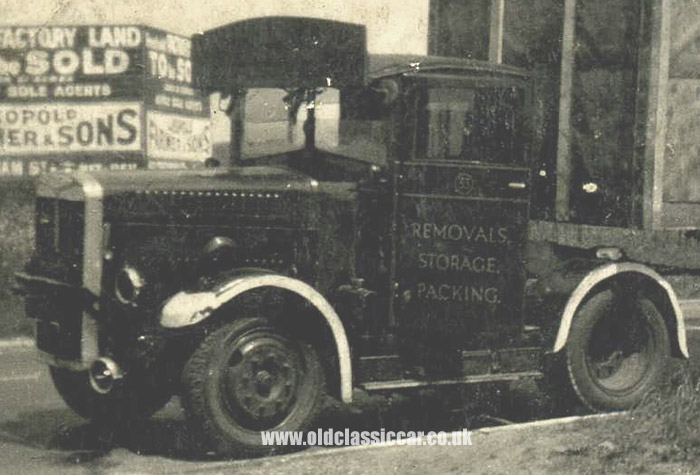 The presence of blacked-out headlamps and white paint on the wing edges, signs of wartime use, suggest a photograph dating to the early/mid 1940s. A close-up of the lorry can be seen below: