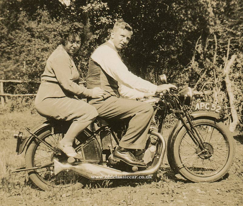 Identifying old motorcycles in photographs can be quite tricky, just like with snapshots of older cars. No notes accompany this 1930's photo of a BSA motorcycle, printed on Velox paper, so the only information available is what can be gleaned from studying this side-on view of two people and a pre-war "Beezer".