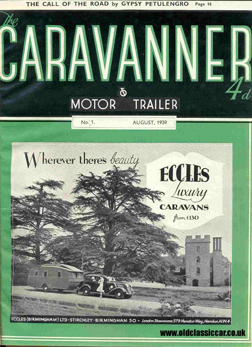 Cover of the first issue of Caravanner & Motor Trailer magazine from 1939, with an ad for Eccles Luxury caravans on the cover.