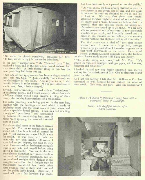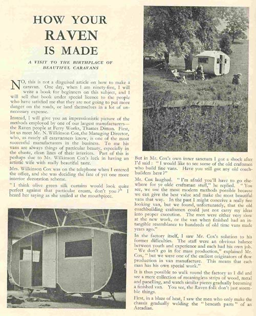 A two page article about the factory that built Raven caravans in the late 1930s. Page One, Page Two.