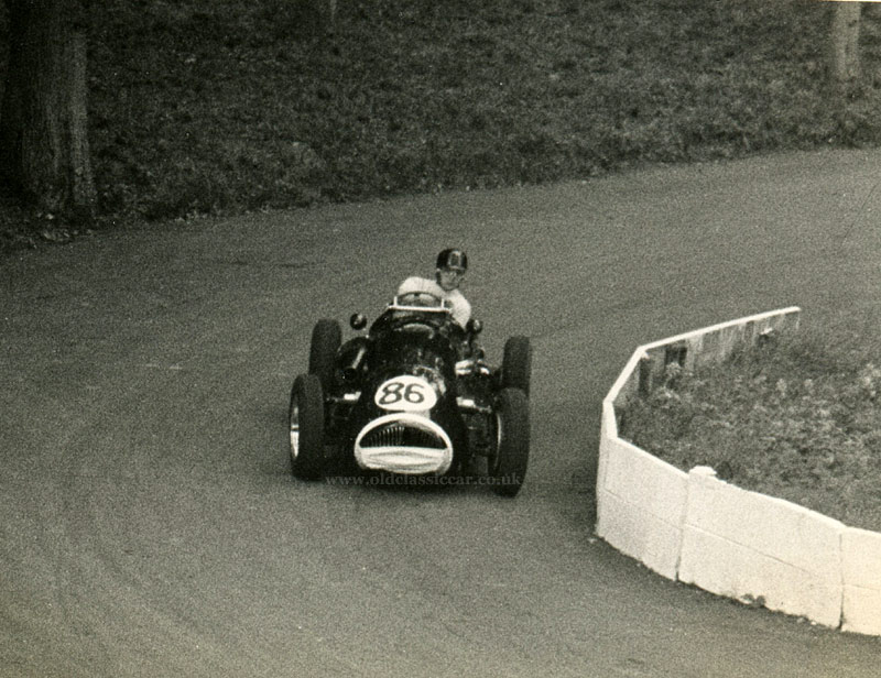 Firstly, an A-Type Connaught in action, here at the Prescott hillclimb in 1954. The driver is John Riseley-Prichard. Connaught A3 was raced by Ken Downing during 1952, then went to team owner Rob Walker in 1953 where it was driven by, amongst others, Tony Rolt and Eric Thompson. During 1954, the date of this photograph, drivers Riseley-Prichard, Rolt and Peter Collins competed in it. The former continued to race into 1955, before retiring from the sport, after which Tony Brooks took over.