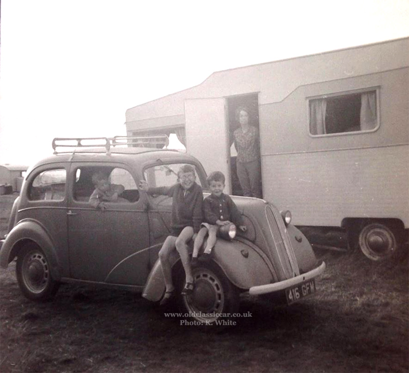 The following photo dates to 1968, and was provided by Kevin White who keeps this within a collection of family pictures. At the time, his family were holidaying in North Wales, staying in the touring caravan shown - can anyone identify the family's accommodation? The Pop has been fitted with aftermarket flashing indicators, and also a small metal roof rack. It was registered 416 GFM, a Chester series from 1958 (Pops of this shape continued in production until 1959). Thanks for the photo Kevin.