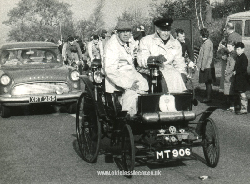 An unlikely twosome if ever there was one, a Mk2 Consul registration XRT 255 and the 1896 Arnold Dogcart registration MT 906. Apparently the latter is the only surviving car from the Emancipation Day Run of 14th November 1896, when the motorist was freed from the burden of following a chap walking along with a red flag. It looks like this photograph was taken on a 1950's running of the RAC London to Brighton run for veteran cars. The Consul was registered in 1958, so the photograph therefore dates to that year or later.