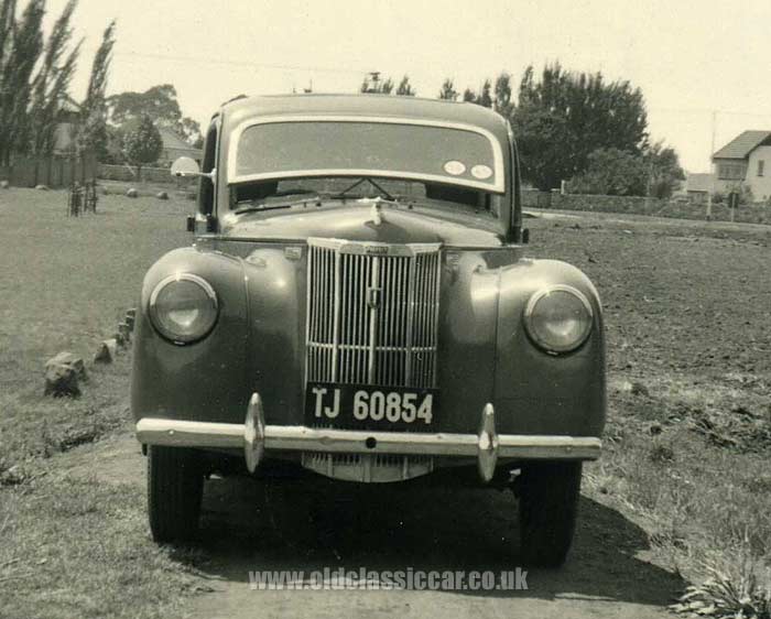 Fourth Prefect photo on this page shows an Irish-registered example - ZJ 1264 - parked in the driveway of a '50s bungalow. This registration series, allocated to the Dublin area, was only used for a short time between 1949 and 1950. The Prefect looks in good order, fitted with extra spotlamps and a slightly wonky-looking roof rack. It also has an adjustable spotlamp affixed to the driver's windscreen pillar, and just visible a car radio aerial next to it.