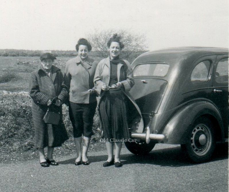 Two young ladies - and another of slightly earlier vintage - are stood with the following Prefect in this next old photo.
