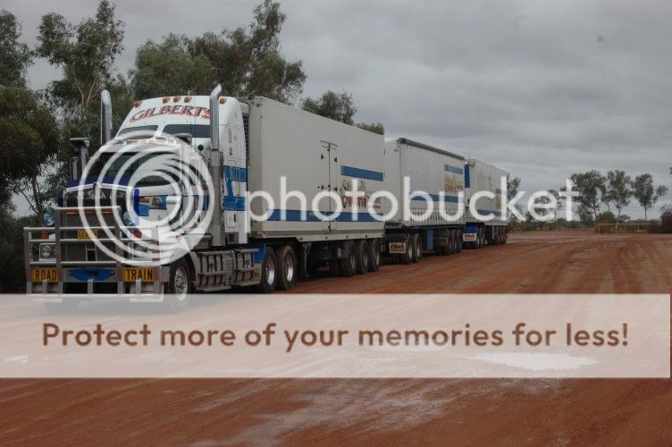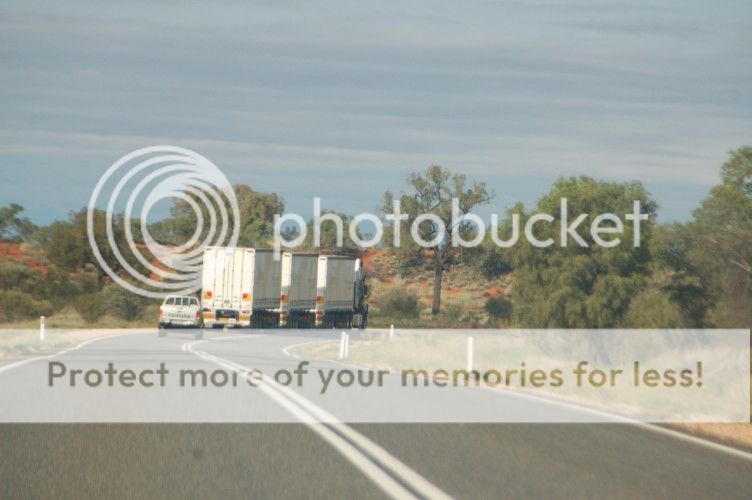 We had heard that there had been rain to the south while we were in Alice. When we reached Cadney Homestead, there were a lot of puddles about. There was also a stationary road train to study.