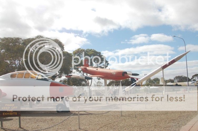It had been our intention to spend some time visiting a few places off the tar-sealed road. Unfortunately each road we sought had been closed due to the rain, so we had to return via Port Augusta. At Pimba we turned off to visit Woomera, the township set up in the 1940's for testing rockets, and as a base for the atomic bomb tests. It was Sunday so the museum was closed, but there was a wealth of outside exhibits to see.
