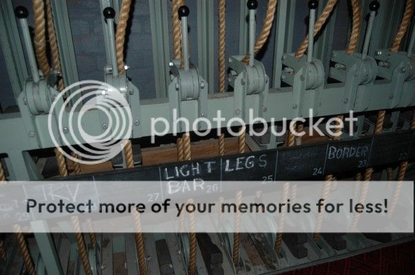 Not only that, very careful thought and planning went on behind the stage to provide every thing needed for modern productions, too involved to explain here, but including such things as ground level fly-rope control.