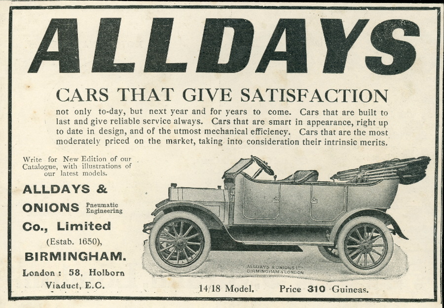 Posted: Sat Mar 14, 2020 5:46 pm Post subject: Alldays & Onions Advertising Card for 14/18 Model, 1911 |