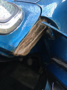 I’m slowly tackling the various jobs requiring attention on my recently-purchased Sceptre Mk2. One of the most pressing concerns the holes in the scuttle on both sides just beneath the A pillars, only visible with the doors open. They’re above and below the little “gutters” whose function is to collect the rain and deposit it somewhere relatively benign.