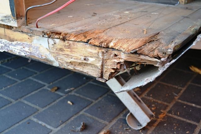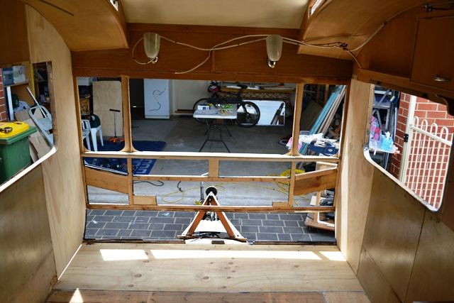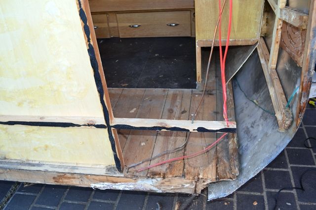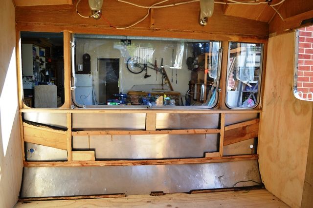 Progress continues and I will post some new photos very soon. The entire front panel is now removed, but the new floors have replaced the rotten ones and I have installed fresh hardwood side joists and various other bits and pieces. Structurally, she is coming back together. Now I need to rebuild all of the front framing timbers (most are salvageable) and get the front alum panels ready for resealing so they can go back in.