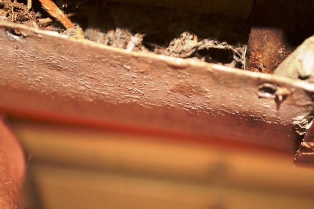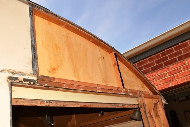 This shot below shows the story well. A giant slab of builders bog has been crudely slapped into a large, rotten gap. This forced the front curvature of the panel to sit away from the frame, creating a large gap for the entry of water and spiders.