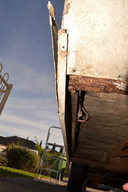 I also wanted to include some close-ups of the actual corner and the damage to the floorboards at the edges. Clearly this is a weak point for all old caravans, particularly this one. I will have to remove the entire length of floorboard (the first three boards) which are tongue and groove and I believe they look like treated oregon pine, but I could be wrong.