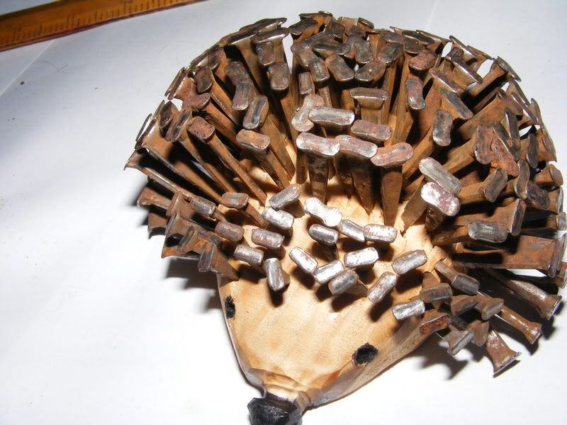 I made him on the floor infront of the Ford, I was so careful I picked every nail up, probably have missed a few, so half expecting a puncture of two! He has also shed a couple of spines already. hehe