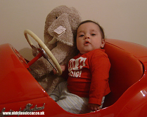 While RJ was out in the garage getting grubby, young Harley (and Nellie the Elephant) decided to try out the red car for size..