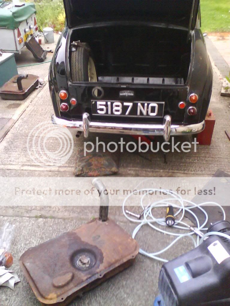 I've been pretty busy for the last few weeks and 'Nobby' has been sheeted up in the garden, however we did manage to get a replacement fuel tank at the National Rally. It will be nice to get the car running under its own steam.