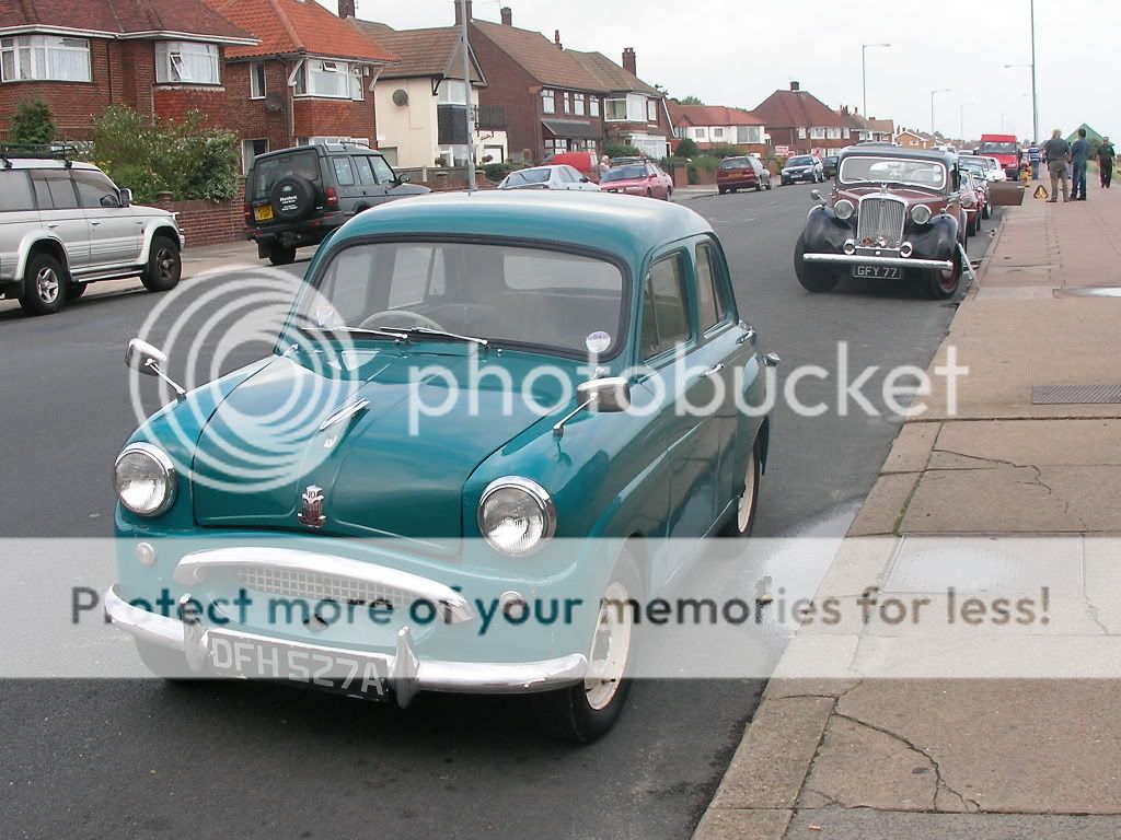Thanks for that John I'm going to save your posts as I think that in the future with younger MOT testers replacing people who grew up with these cars were going to see more and more disputes over what goes. The Rover is a 1949 model and the chap I take it to (who is retirering this year) told me he couldnt test it on the flashing indicators as there not original equipment to the car, this has never been a problem as the semaphores work fine. The rear light unit has a frosted section over the side tail light light section but clear glass over what was the reverse lamp section so its got an amber bulb in there, the front side lights are the Lucus torpedo type so there's not much scope for fitting an amber lense or amber bulb. Belowe are photo's of both the Rover showing the lucus Torpedo side lights and the Standard (taken on Yarmouth seafront note the Rover in the background) this was before taking the Standard off the road for restoration as it was a lot worse than it looks here after the last owner restored it in the 1980s (for restore read Isopon rebuild) also its been re-registered sinse then because as well as bodging it he sold off the orig number.