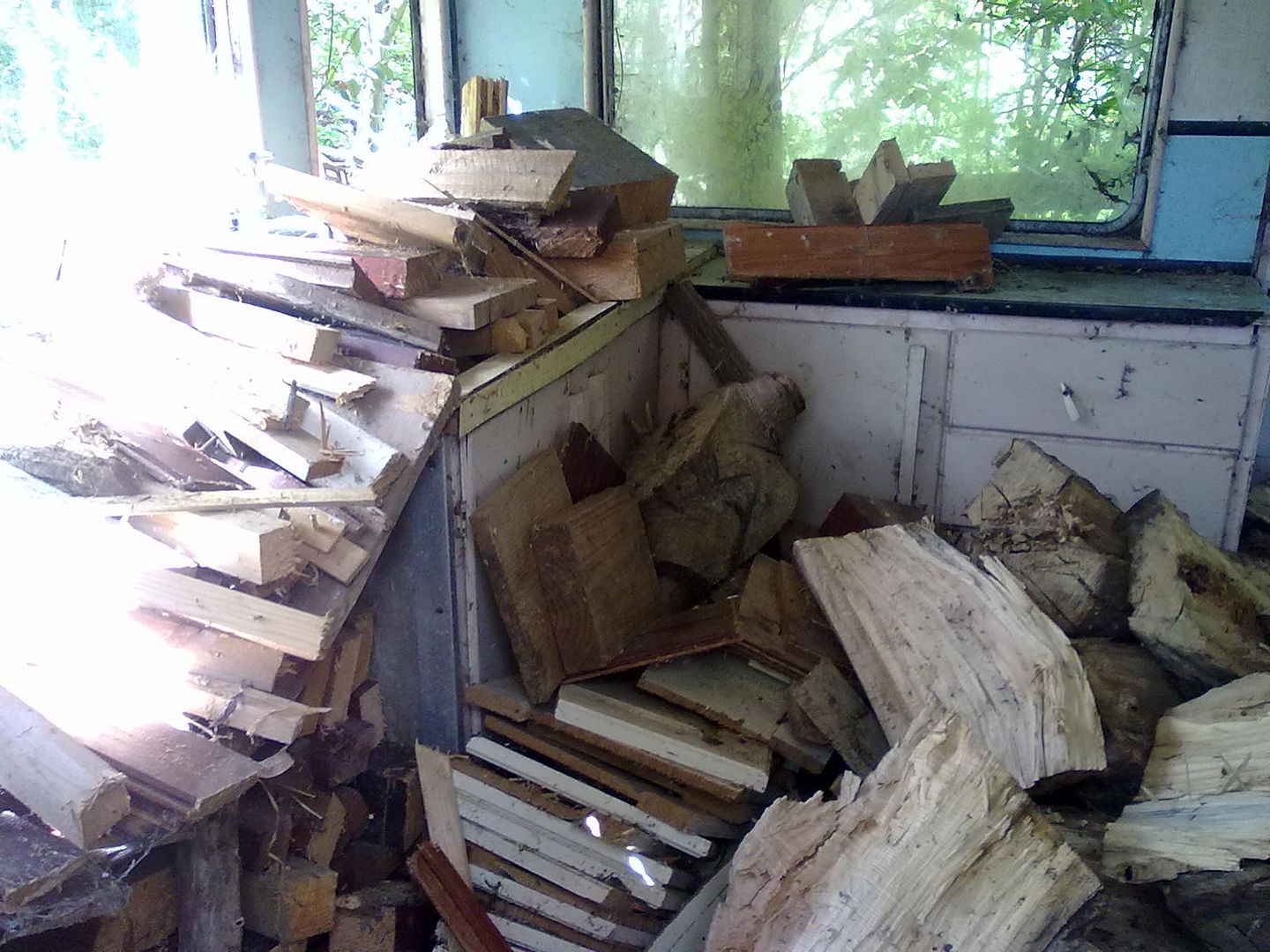 The caravan is looking like it is beyond repair and is full of logs for their log burner in the house.