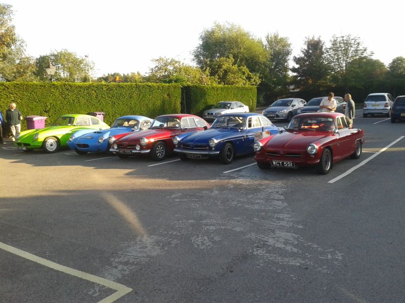 Thought you might be interested in these few images. The Talisman pub in Parkgate, Southampton has a bar dedicated to the Tornado Talisman car with lots of photos etc. Once a year the club has a meet there and on Thursday of last week we had the rare occurrence of three Talismans in the same place. A Tempest, a Rochdale and a Fairthorpe also turmed up. My car is the red one on the right, the blue car is owned by the formed MD of the Tornado Car Company who is extremley knowledgeable about all the cars and the other red one attended Goodwood and on the Monday it was planned that it would feature in a repeat of a 1963 road test with a period Lotus Elan.
