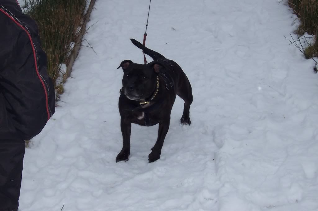 heres a few pics of my 8 year old staffy sadie.her grandfather won best staffy at crufts in the eightys and her father has won numerous shows here and abroad ,