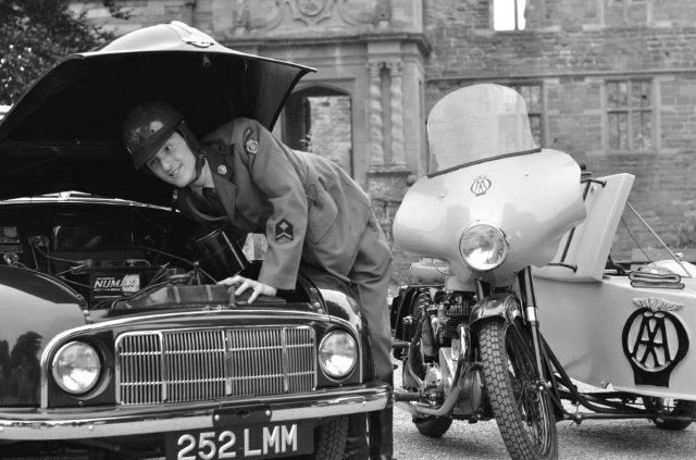 Hi all. This is me with my Grandfarthers 1961 BSA M21 AA Combination (Genuine bike not replica). This picture was taken at Rufford Abbey on 21st July 2013 at its 2nd show of the year. We have a lot of interest in this bike and many want photographs with it. We are available to use it for photo shoots with me being the patrolman.