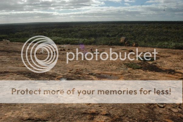 The first feature we stopped at is called 'Disappointment Rock'. Well I don't know who was disappointed, but to us it was an amazing sight. An immense sheet of granite with some tumbled boulders at its base.