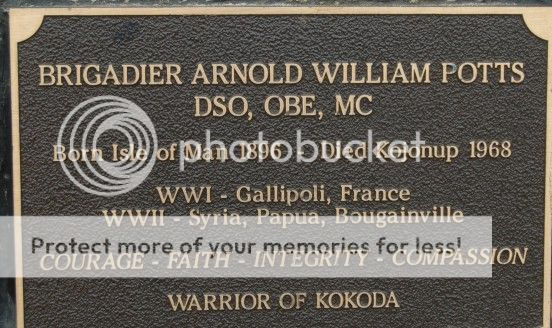 Nearby was a memorial to those who fought at Kakoda during WW2, and, as well covered all those involved in conflicts. I was surprised to find out about Brigadier Potts, who spent most of his later years here.