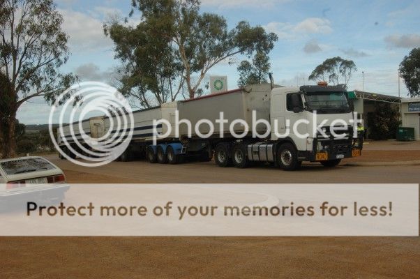 At Mungunup, we stopped at the toilets, and at the same time a road train pulled up, so I was able to chat with the driver. He was carting wheat to the port. His rig, when loaded was, in his words, "about 100 tons all up."