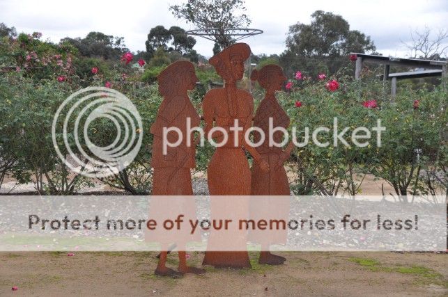 On we pressed through a number of towns, then made a long stop at Kojonup. Among the features here is a maze created with rose bushes, and scattered through the maze are plaques, which together give the story of three different women through the century. One is and Englishwoman, one from Italy and the third a native Aborigine. It was very well done.