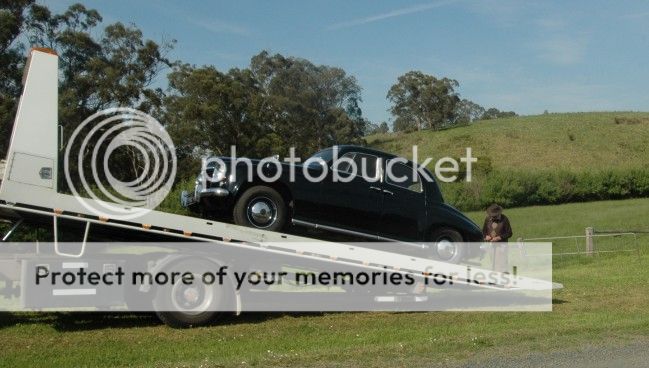 An under-bonnet check revealed that the fan belt had broken. Fortunately we have become members of the RACV, so called them. After some wait, a car arrived, and after an explanation the driver set off in search of a replacement belt for us. A while later he telephoned to say that he could not get one, and was dispatching a truck to take us home.