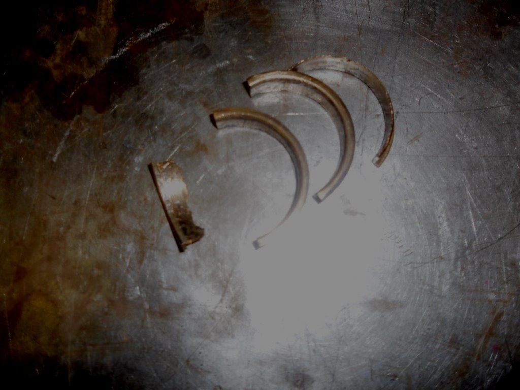 The bearings are white metal in bronze cases, and one of the big end cases had broken up: