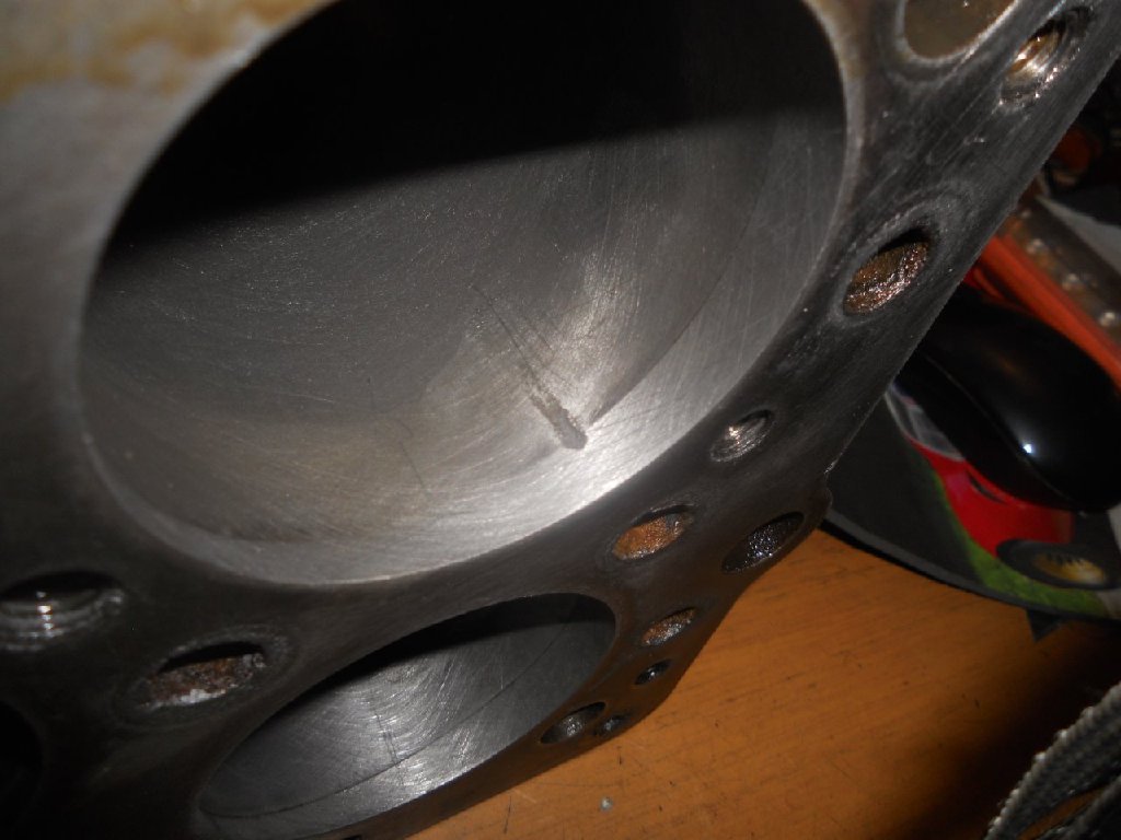 So it was engine out again, to reveal a very sorry state - it was the front main bearing that had seized, but the big ends were on the point of disintegration, the pistons were in a bad way and the bores badly scored ...