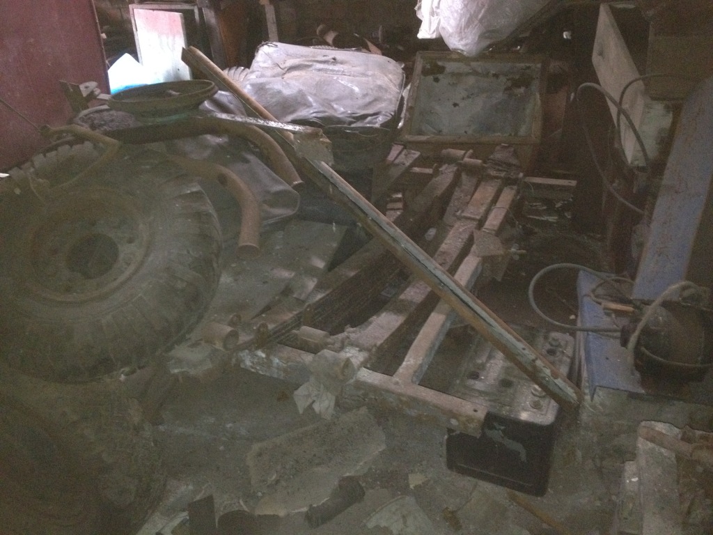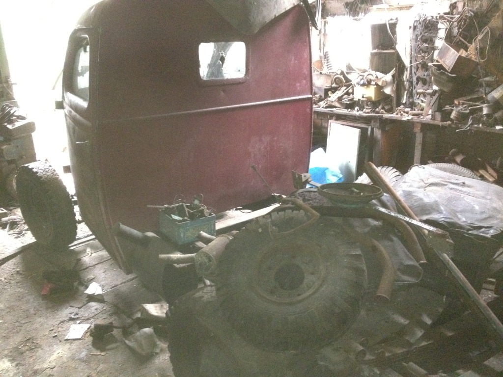 The little truck was buried under a pile of parts and random objects, I couldn't get near it until it was moved. This is halfway through.