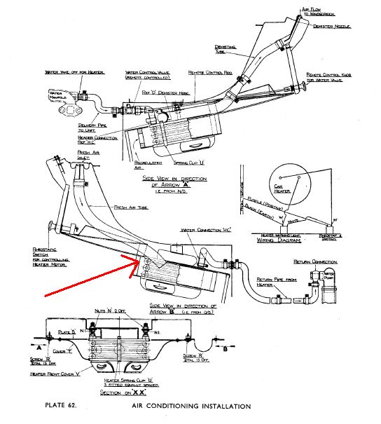 After the war the rather similar MkIV Jaguar came fitted with a heater (or air conditioning as they called it) so I used the same type of Clayton heater and also the fittings for passing the hoses through the bulkhead, one of which includes a tap.