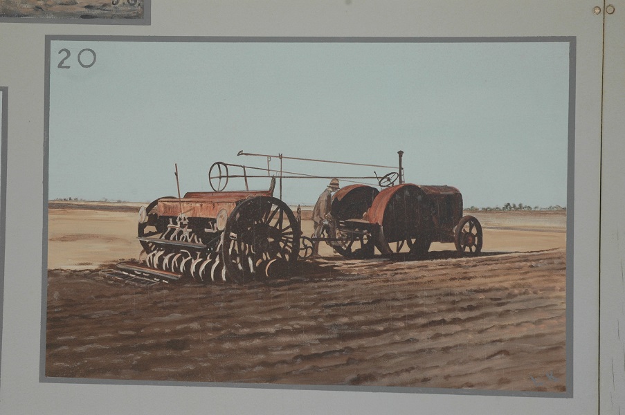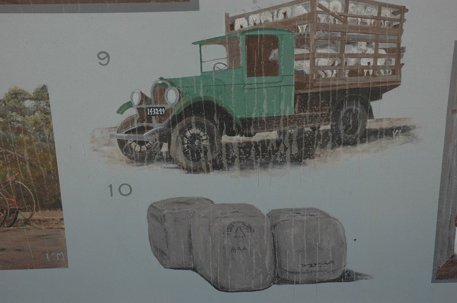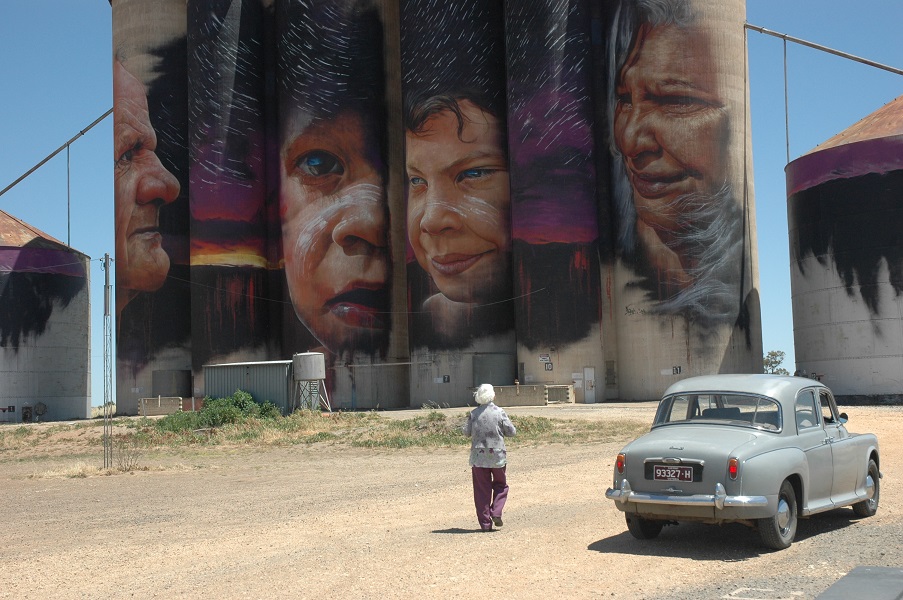 Onward to Warracknabeal, a sizeable town of 2,400. It is, unfortunately showing signs of dwindling activity, in spite of it being dubbed ‘The Heart of The Mallee’. A local gentleman told me that less than twenty years ago, the town had every conceivable amenity. One did not need to go elsewhere to purchase any requirement, but the last car sales business had now closed, and there was a risk that other businesses would drift away. It is still part of the vast wheat growing area, but as farms get bigger at the expense of others, so too the general rural population decreases. We knew that there were no silo paintings there, but we did photograph a mural, then found the route out of town and set off for Sheep Hills.