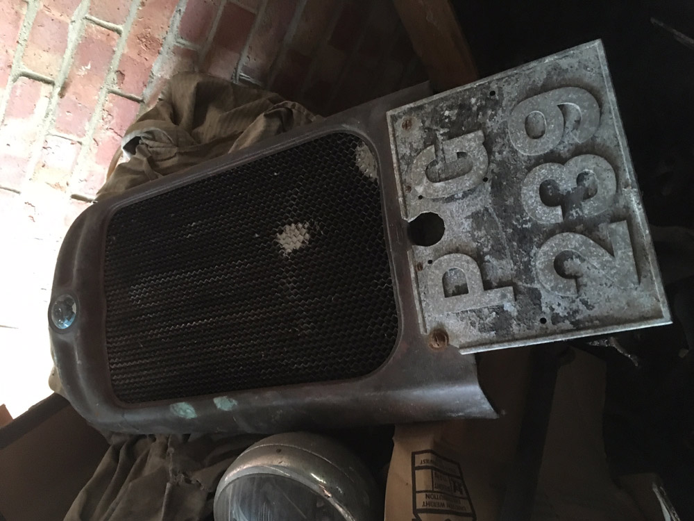 Ok here goes. To me the main car looks like an Austin 7, the radiator looks like a Triumph Super 7 (or perhaps another related model), while the headlamps look later than both, so I think we might have a mixed bag of parts rather than one complete car (unless the Austin front end parts are hiding under the other items?).