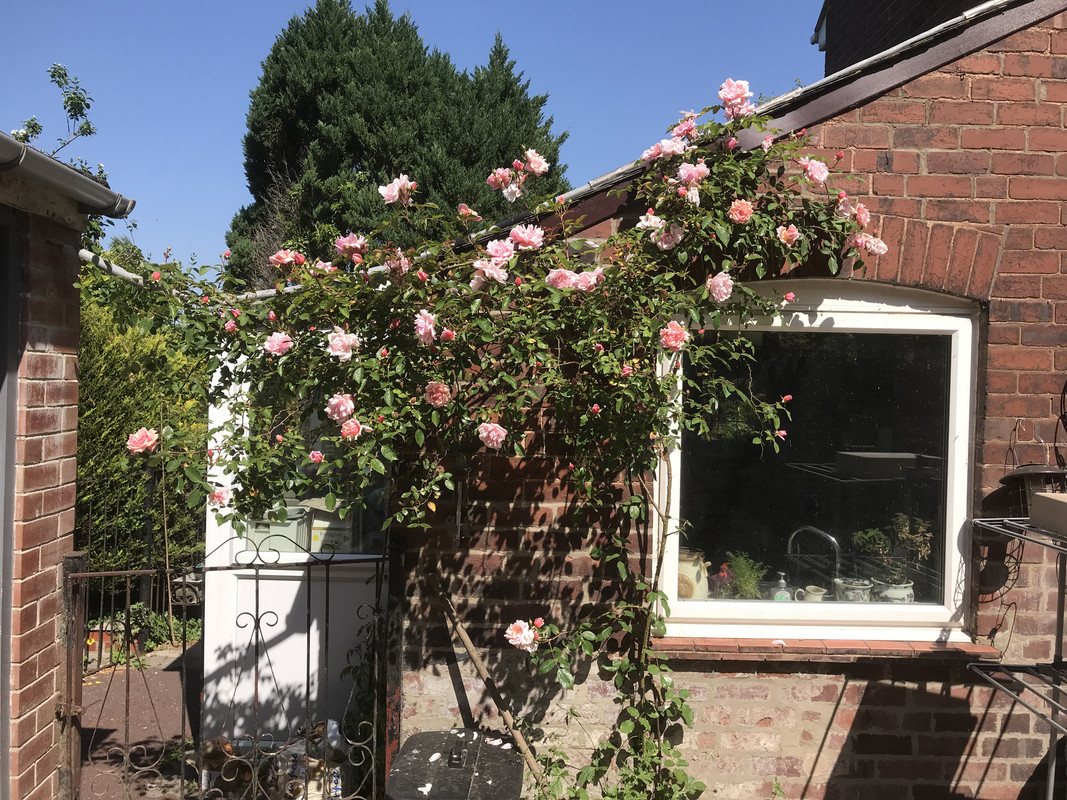 An old fashioned rambling rose with the most wonderful scent; due to the fine weather, this is the best it has been in 20 years.