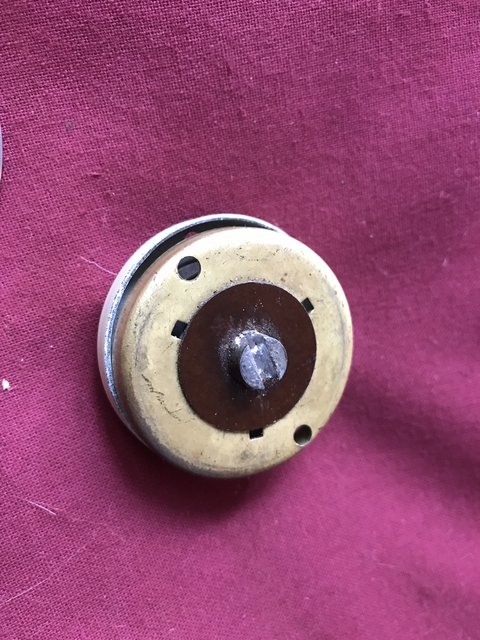 When the button is depressed against the spring pressure a connection is made with the case and should (I think) be earthed through the two brass machine screws that would normally be attached to the metal instrument panel?