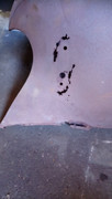 The wing is really mostly an 'outer' in ally, but has a wired edge. At some time in the car's life the wing got dented and the wired edge was 'snapped' in one or two places. repaired it seems, by inserting thin bits of metal where the wire edge has split.