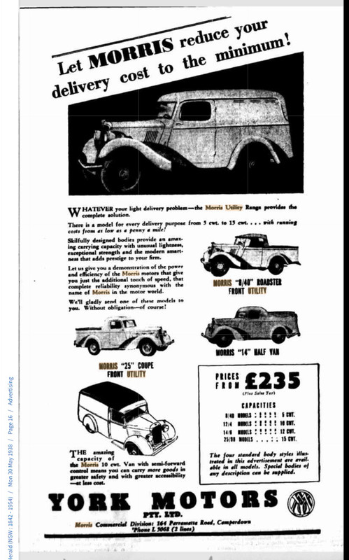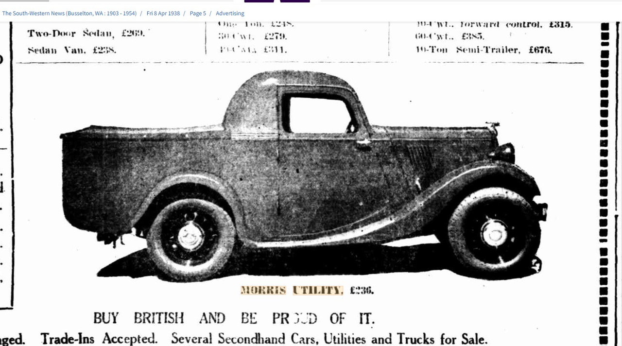 And a West. Australian advert for a Department Store that sold Morris utes . here is the link https://trove.nla.gov.au/newspaper/article/147653374?searchTerm=%22Morris%20utility%22