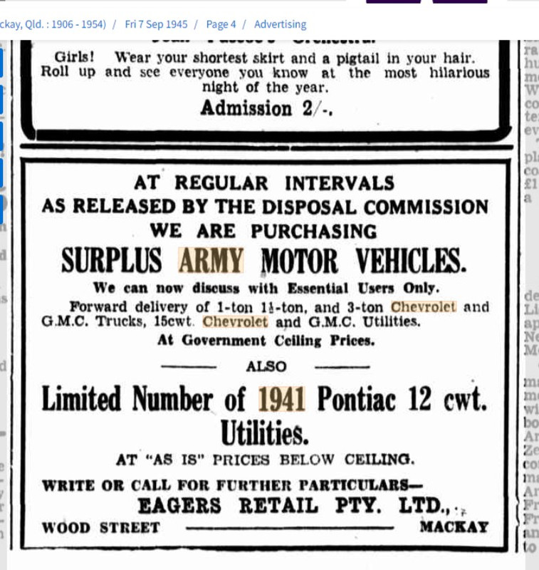Some of these masonite utes were used by the (USAFIA) US Army Forces In Australia during WW2.