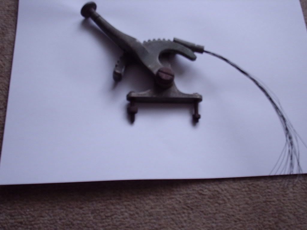 It is an adjustable quadrant for a bowden cable, the knob at the top has to be raised to move the handle along the teeth, It is beautifully manufactured out of brass (I think) with nickle plating.