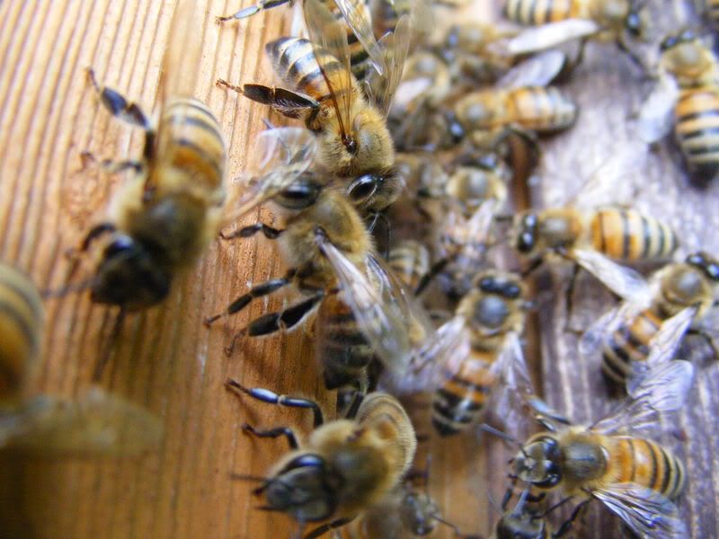 No bees allowed in the garden, just empty hives, as my sister is phobic of them, but we have a fair few at the out aparies, with about 40 -60 thousand in the average hive in the summer! hehe